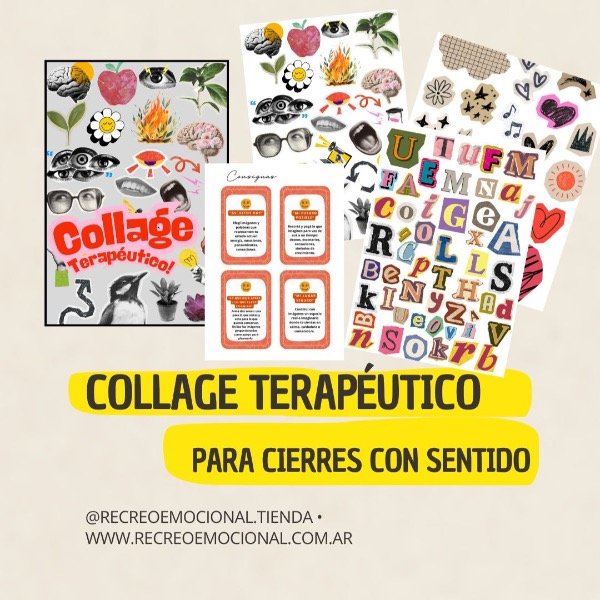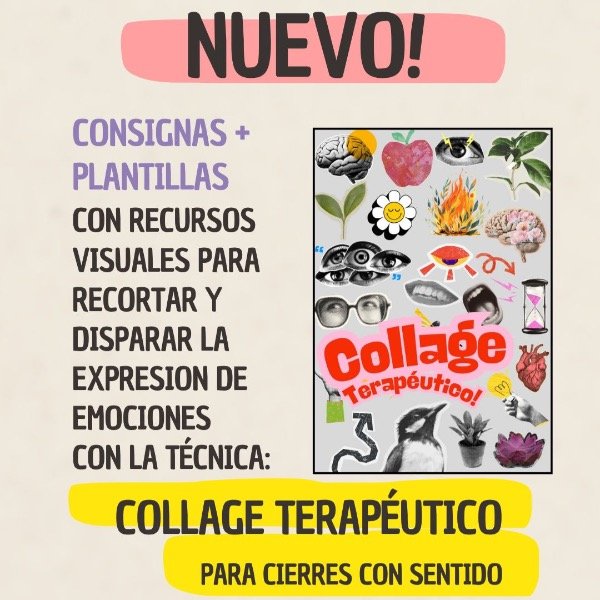 Recurso para el armado de un Collage visual terapéutico lleno de imágenes, palabras, íconos y flechas que funcionan como disparadores visuales para explorar emociones, cerrar ciclos y proyectarte hacia lo que viene.